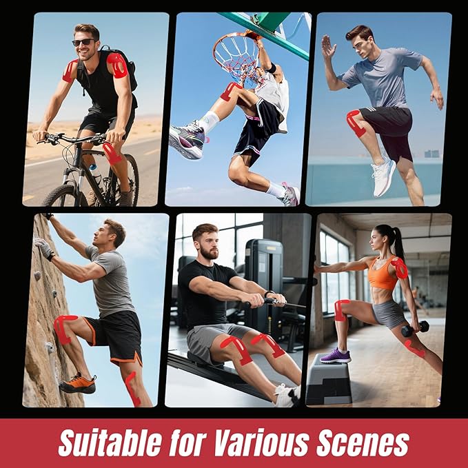 - 【Waterproof & Extra Strong All-Day Hold】This sweat-proof and waterproof athletic tape features superior adhesion that stays securely in place — reducing peeling and providing continuous, lasting pain relief & knee support for running, gym, intense workouts, and recovery.
