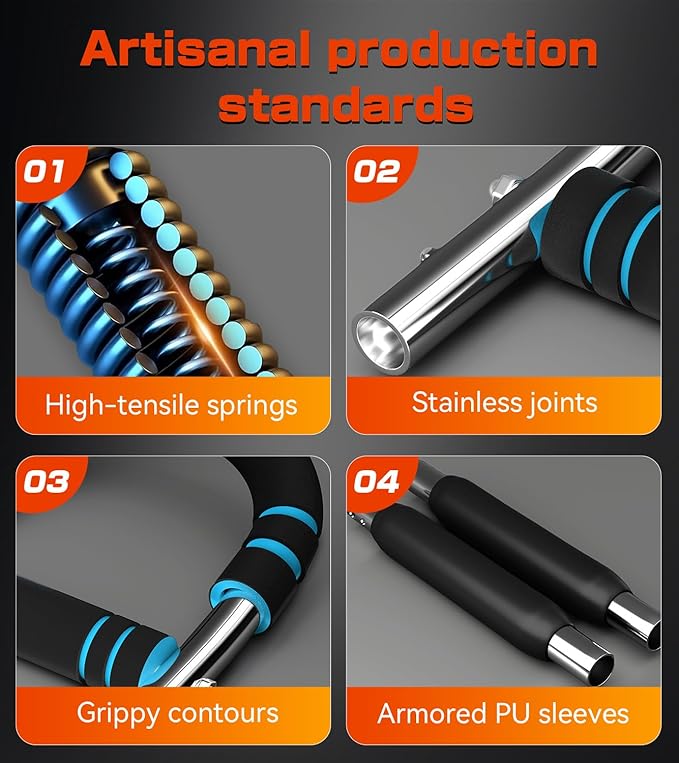 - 【Total-Body Tormentor: Arms, Chest, Back & More】Blast 6+ muscle groups simultaneously. Our forearm trainer steel spring + latex band combo mimics heavy gym gear – sculpting Hollywood arms and cobra-back definition without leaving your basement.