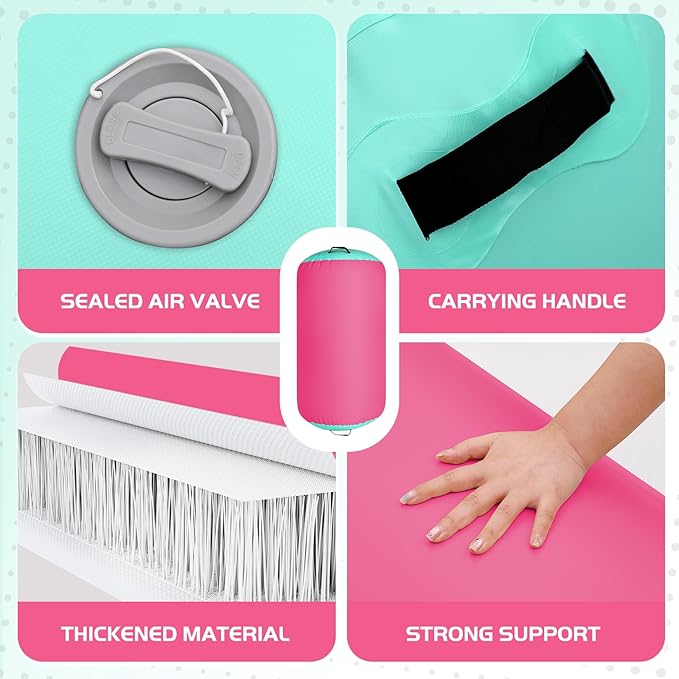 - Better Material: Our inflatable gymnastics roller are made of quality PVC. All seams are reinforced for better air tightness and durability. The waterproof material is easy to clean and allows long-term use.