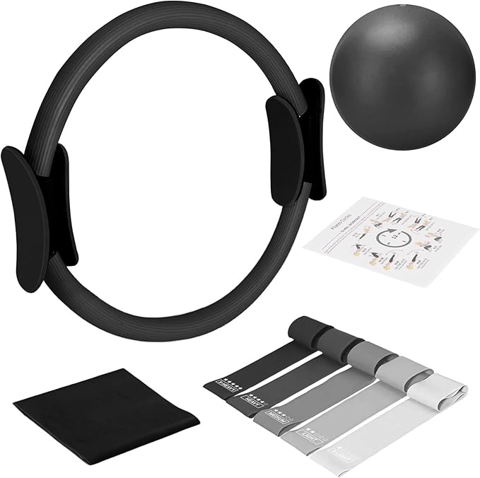 - ๐๐๐๐๐๐๐ ๐๐๐๐๐๐๐๐๐ ๐๐๐๏ผPilates Kit includes everything you need for a complete Pilates workout. It features a 14-inch Pilates ring, 9-inch mini Pilates ball, resistance bands in 5 levels , elastic strap,Workout Guide ,making it the perfect Pilates essentials kit for women looking to improve strength, flexibility, and stabilityโall from the comfort of home.