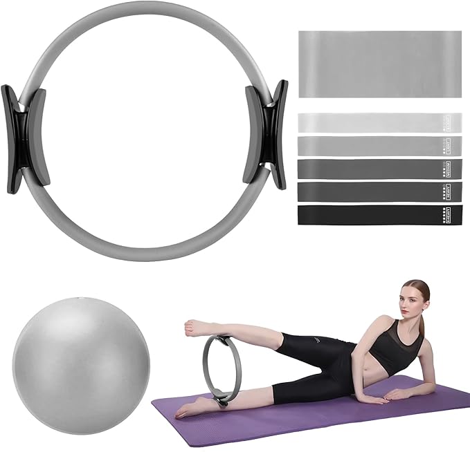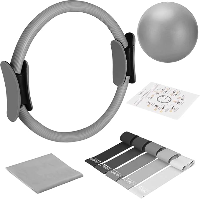 - ๐๐๐๐๐๐๐ ๐๐๐๐๐๐๐๐๐ ๐๐๐๏ผPilates Kit includes everything you need for a complete Pilates workout. It features a 14-inch Pilates ring, 9-inch mini Pilates ball, resistance bands in 5 levels , elastic strap,Workout Guide ,making it the perfect Pilates essentials kit for women looking to improve strength, flexibility, and stabilityโall from the comfort of home.