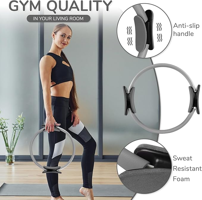 - ๐๐๐ฟ๐ฎ๐ฏ๐ถ๐น๐ถ๐๐ & ๐๐ฟ๐ถ๐ฝ; Our equipment suitable for beginners and home use๏ผThis 14-inch Pilates Ring is where the magic happens. It boasts high grade, resilient fiberglass encased in a thick rubber shell, which gives the ring a superior resistance and durability. It also features an unrivalled comfortableness thanks to the wonderfully soft, 7mm thickness foam padding on both inner and outer handles.