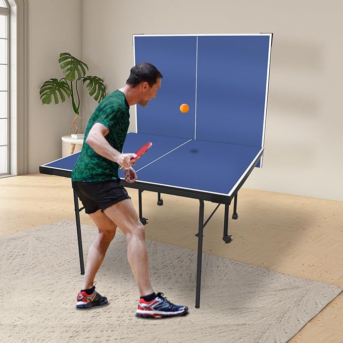 - PLAYBACK MODE AND OPTIMIZED TRANSPORT: Each half folds independently for flexible storage and solo playback practice. Features large 6-inch wheels for smooth mobility and a robust frame designed to resist warping outdoors. Table surface measures 7 ft x 4 ft ft, large enough for competitive games, but small enough to store anywhere