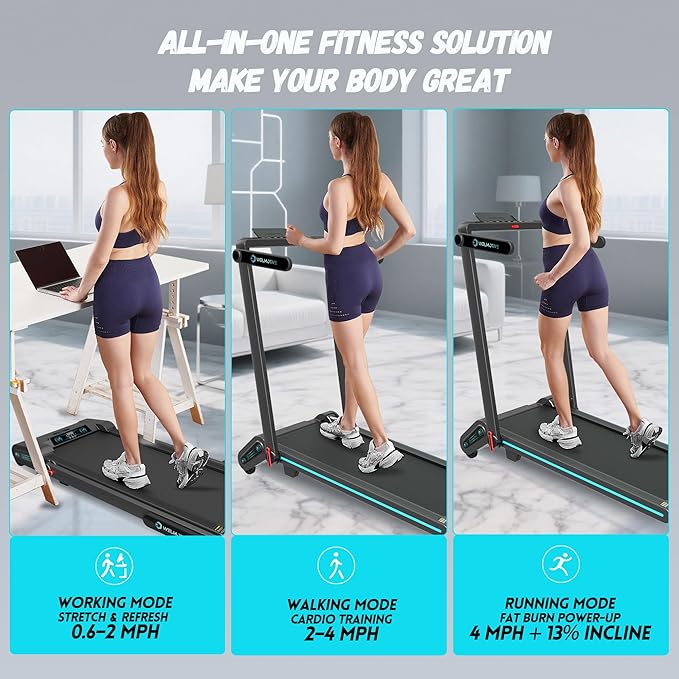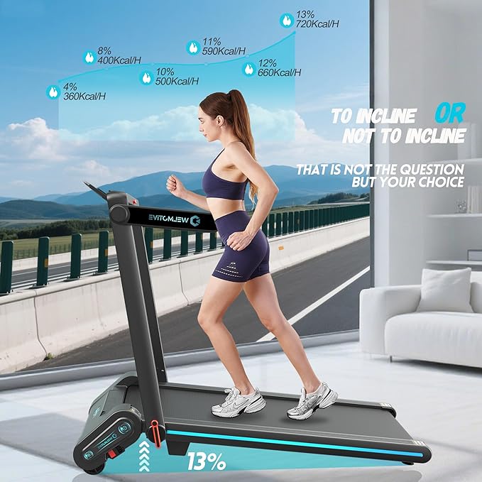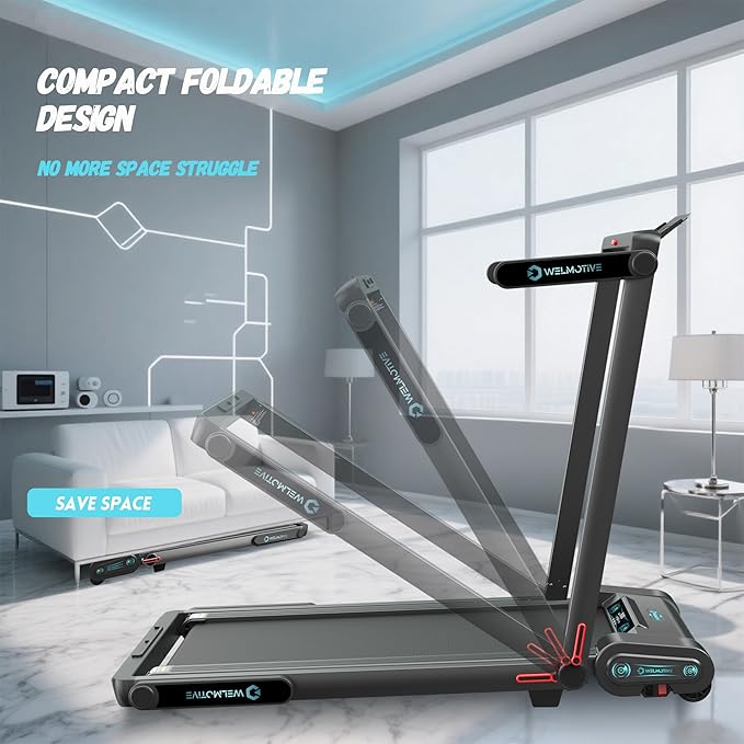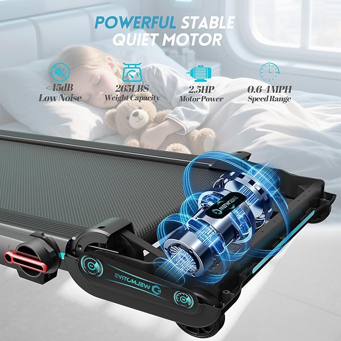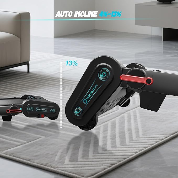 - ⛰️ Exclusive Fold-Up Incline Design – More Than Just a Walking Pad: The Welmotive walking pad features a unique fold-up front structure that activates incline mode when raised. This patented design transforms flat walking into a challenging uphill workout—something most compact treadmills can’t offer.