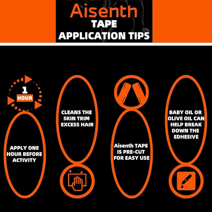 - Premium Synthetic Performance & All-Day Comfort Crafted from 100% synthetic performance fibers, our Aisenth Recovery Tapes deliver quick-drying, water-resistant support for muscles and joints. Ideal for running, CrossFit, tennis, and climbing, this high-elasticity kinesiology tape roll offers superior strength compared to cotton, reducing exercise fatigue and accelerating recovery. Perfect for alleviating knee, shoulder, or back pain during sports or rehab.