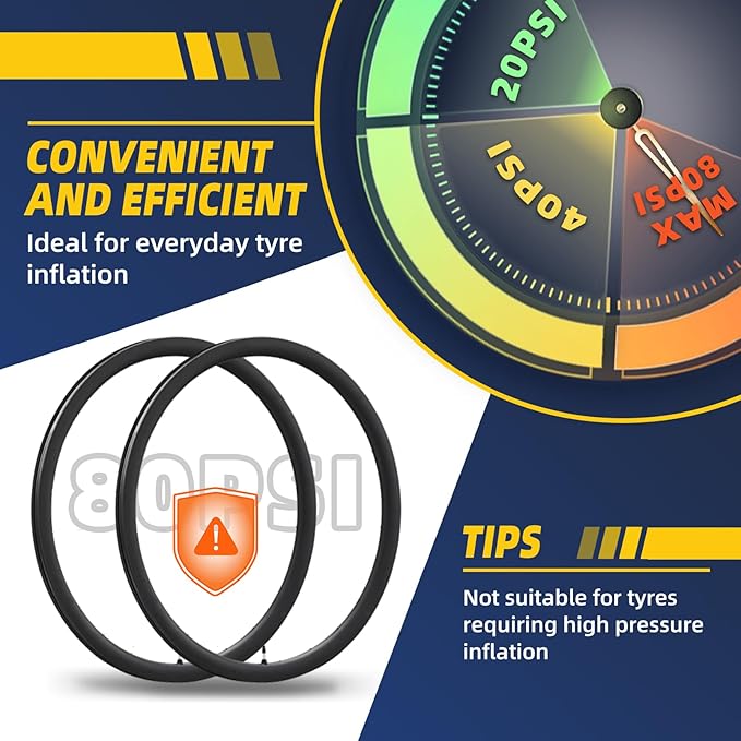 - 【Super Fast Bike Pump】The mini bike pump can inflate your bike tires with a pressure of 80-100 PSI, ideal for daily tire inflation or lighter loads cycling. The bike pump contains a hidden TPU flexible hose, which can be extended or hidden by the locking mechanism around the nozzle, so you can adjust the length of the hose according to your needs when using the bicycle pump, making pumping more effortless