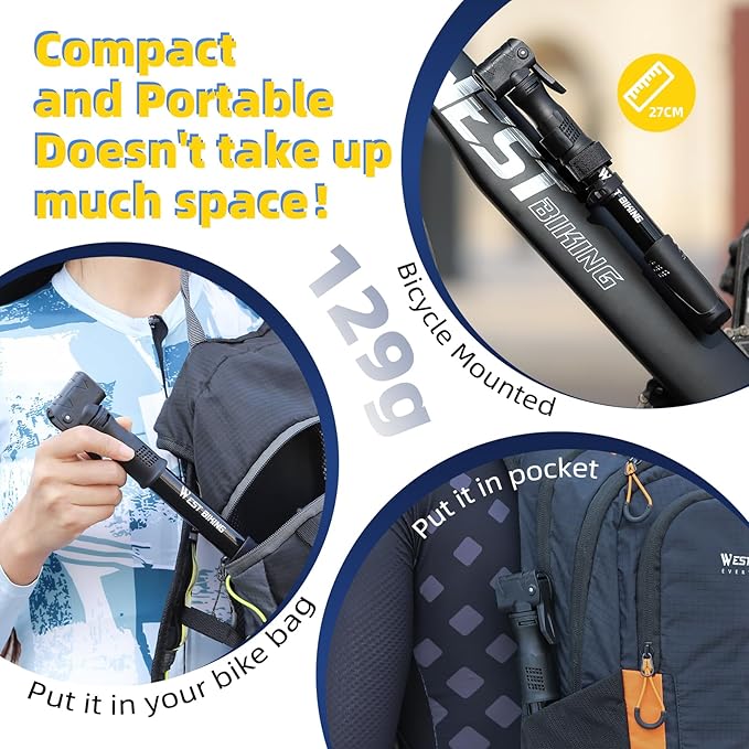 - 【Great Idea for Kids】This cost-effective West Biking mini bike pump combines mini portability with quick and effective pumping, making it suitable not only for adults but also for children who will be pleased to have a lovely companion to their bikes. If there is any product problem please contact us, we will solve it for you within 24 hours!