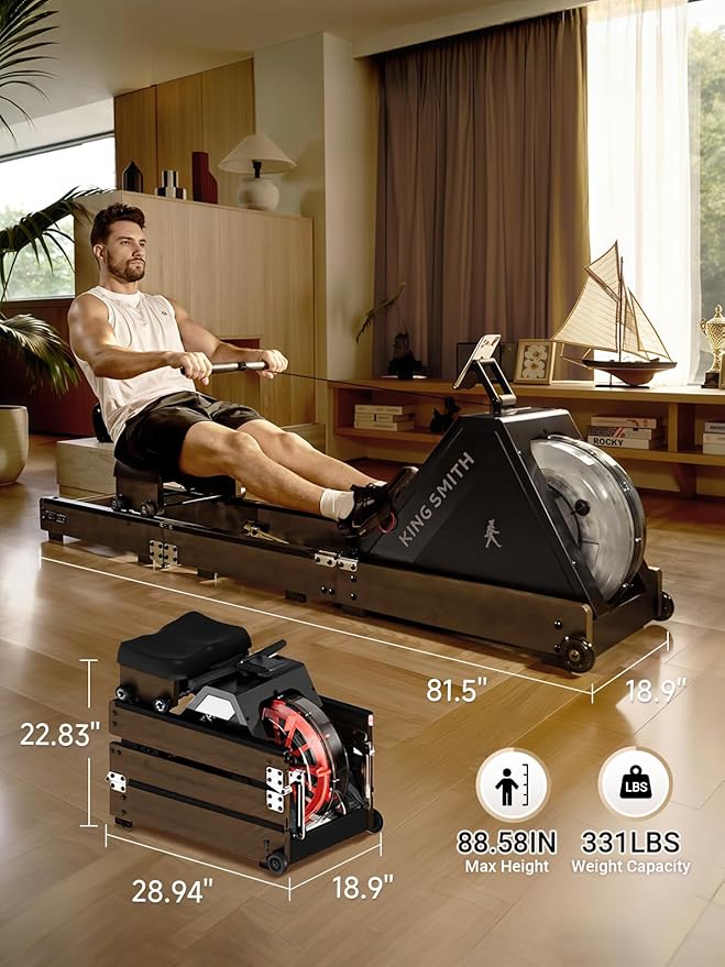 - 【Patented Tri-Folding Design, Smart & Versatile】Experience the ultimate space-saving solution with our innovative tri-fold design. When folded, this water rowiing machine occupies just 3.23 ft² (28.94" x 18.9" x 22.83"), fitting effortlessly into tight spaces. Unlike unstable upright storage, our secure tri-fold design eliminates tipping risks while doubling as a sturdy seat for strength training with dumbbells.