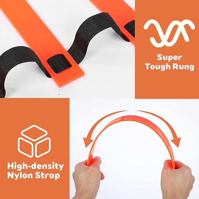 - Adjustable Agility Rung Design: Each rung is 16.5" long, and the space between rungs is adjustable up to 15" inch. You can simple adjust it in the nylon straps so as to meet your workout demands in grass ground or playground