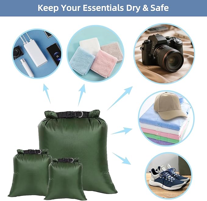 - Durable Yet Feather-Light - Built for active lifestyles, each dry bag waterproof combines tear-resistant strength with an ultralight design. Whether you need a compact waterproof bag for kayaking for kayaking, hiking, or a quick weekend trip, these waterproof bags keep your load light without compromising protection.