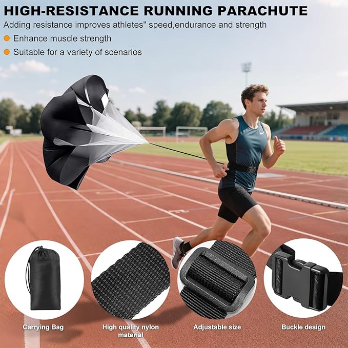- 【Resistance Parachute with Belt and Soccer Kick Trainer Set】Parachute with fast release waist belt include for improved speed, stamina, strength, and acceleration chute releases while running for over speed training. Soccer Kick Trainer allows players to maximise the number of touches on the ball, keep the ball around you with this soccer trainer. And you have more time improving passing, receiving, ball control,throw-ins. Great football training aid for kids and adults.
