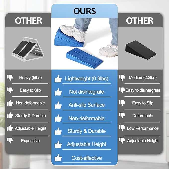 - ※ PORTABLE & EASY TO CLEAN DESIGN : Our Calf Stretcher has a foldable design that is lightweight and easy to carry. They can be used in any combination as well as individually and are extremely lightweight for portability. It's stain-resistant and quickly regains its shine just by wiping with a cloth and rinsing with water. Work out your legs and feet with this squat wedges for runners and fitness enthusiasts, it's perfect for squats and will boost your workouts