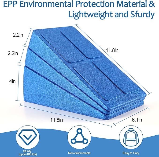 - ※ DETAILS MAKE THE DIFFERENCE : Slant Board for Calf Stretching uses EPP environmentally friendly materials that are non-toxic, odorless, waterproof, and oil-proof, 100% recyclable, and almost no performance degradation.foam wedge can withstand 440 lbs.compared with the slant board on the market, our products have the advantages of light weight and easy storage. they can be moved to every place in the house at will and can be reused many times.