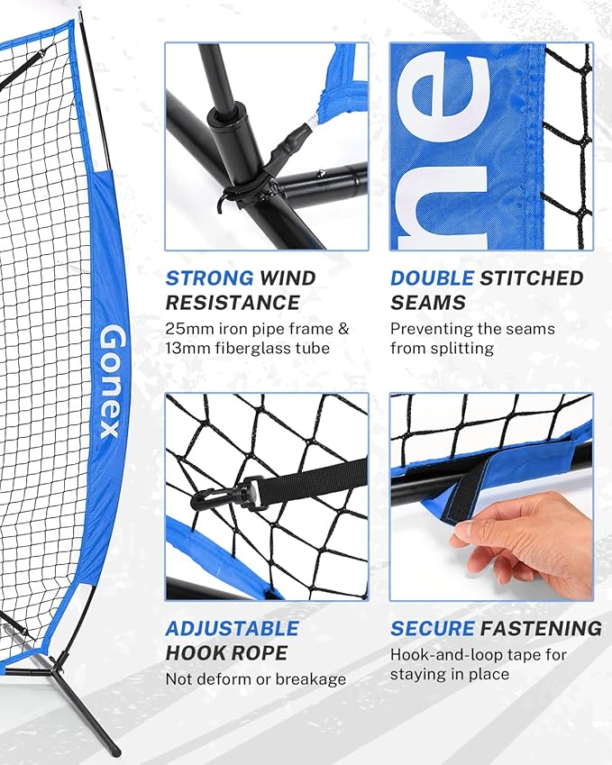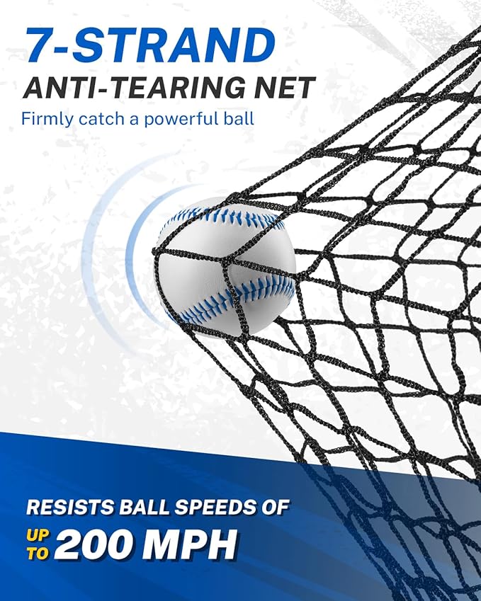 - Durable 7-Strand Polyester Mesh: Unlike typical 3- or 5-strand nets, the Gonex Baseball Net is crafted with 7 strands of polyester mesh for enhanced durability. The thickened net and double-stitched seams firmly catch powerful hits without tearing, ensuring lasting quality