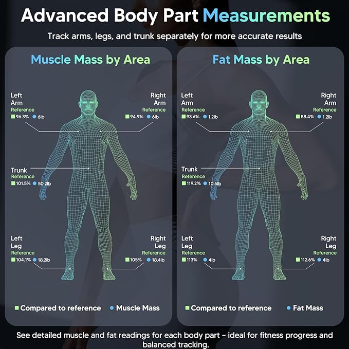 - Comprehensive Body Data Analysis – 8-electrode segmental tech measures 26 metrics: weight, BMI, body fat %, visceral fat, muscle mass, bone mass, water, BMR & more, giving you a full health snapshot at home