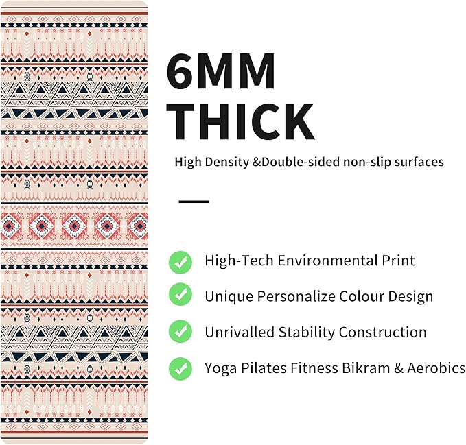 nuveti Yoga Mat Print Extra Thick TPE Non Slip Fitness Exercise Mat with Carrying Bag,72"x24" Extra Thick 6MM Exercise & Workout Mat for Yoga, Pilates Fitness and Floor Exercises