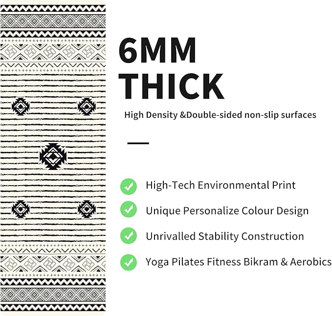 nuveti Yoga Mat Print Extra Thick TPE Non Slip Fitness Exercise Mat with Carrying Bag,72"x24" Extra Thick 6MM Exercise & Workout Mat for Yoga, Pilates Fitness and Floor Exercises