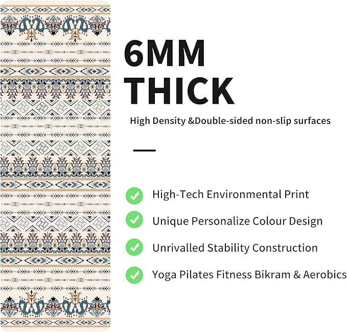 nuveti Yoga Mat Print Extra Thick TPE Non Slip Fitness Exercise Mat with Carrying Bag,72"x24" Extra Thick 6MM Exercise & Workout Mat for Yoga, Pilates Fitness and Floor Exercises