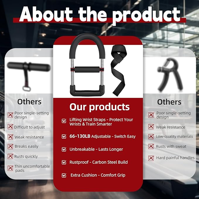 - You Will Receive a Arm Trainer, A Instruction Manual and A Pair of Gym Wrist Straps-helps Reduce Pressure and Friction on the Wrists, Minimizing Discomfort and Potential Irritation