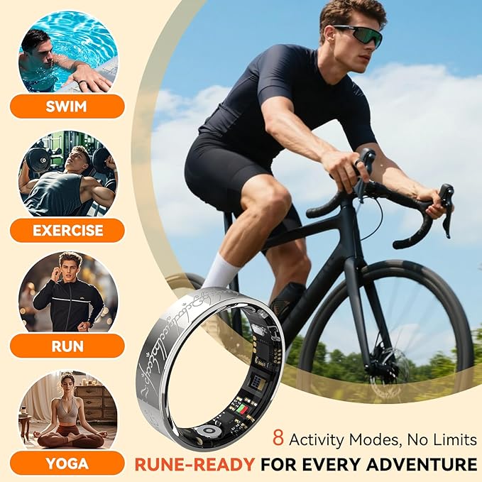 - 【Mystic Runes × Smart Wellness Tracking】Ancient runes meet modern tech. This IP68 waterproof smart fitness ring features deeply etched runes, blending timeless style with advanced tracking. Unisex design discreetly monitors daily activity, rest, and movement—syncs instantly to your phone via Bluetooth. Whether you need a fitness tracker ring, sleep tracker ring, or unique anillo inteligente, it adds purpose and mystique to every day, even through hand washes or light rain.