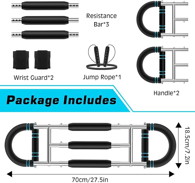 - Easy Installation & Carrying: The chest trainer for men is easy to assemble and disassemble. Its lightweight and compact design is convenient to store and carry, suitable for home or office workout, meeting the needs of fitness anytime, anywhere. It also comes with a jump rope, ideal for warming up before a workout.
