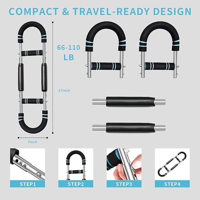 - Fits Any Space, Ready Anywhere: Reclaim your space with our detachable and ultra-compact design. In seconds, it breaks down to store effortlessly under your sofa, in a closet drawer, or even a backpack. Perfect for home workouts, it's also your on-the-go gym for the office or outdoor training. No more bulky equipmen, truly portable —just maximum convenience.