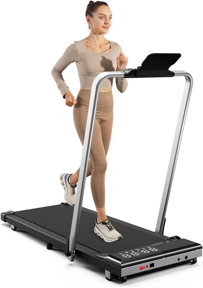 - Walking Pad Treadmill with Handle bar : The 3-in-1 treadmills offers a range of functions that cater to different fitness needs. It can be used for walking, jogging, and running, providing a versatile workout experience.When the riser is folded, it can be used as a walking pad treadmill under desk at a speed of 0.6-3.8mph. When the handrail is raised, it can be used as the running speed is 0.6-7.5mph