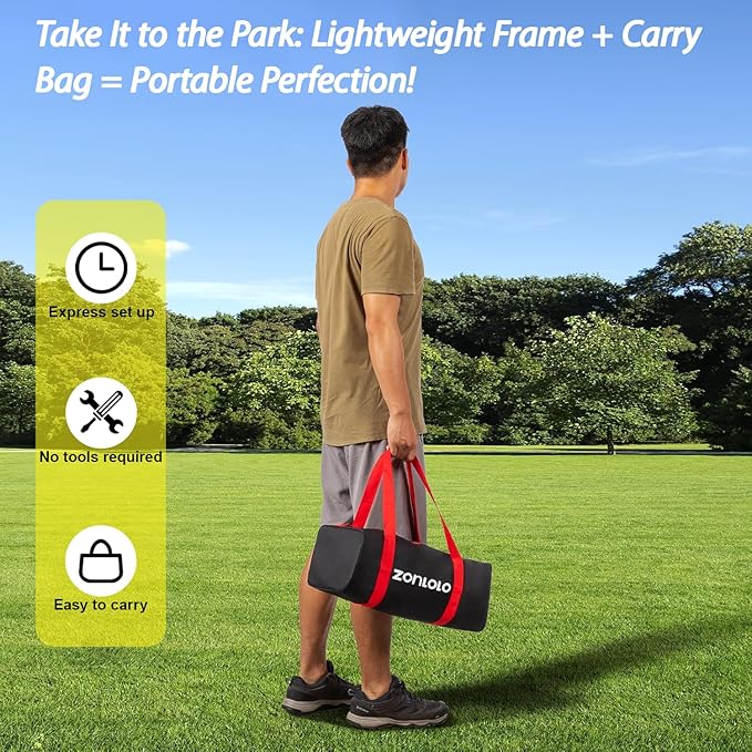 - QUICK SETUP AND TAKE DOWN: Tool-free assembly with sturdy frame construction, our football training net is easily folds down for compact storage and comes with a convenient carrying bag