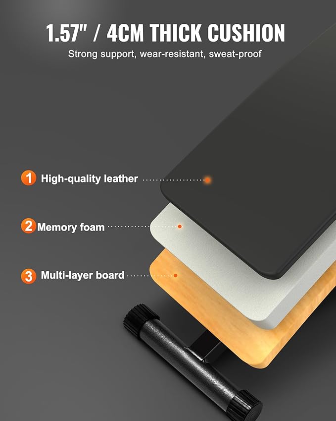 - Thickened Cushion for Comfort: Our ab bench features a thick padded seat with a soft, anti-slip, and sweat-resistant surface. It provides firm support and rebound, reduces pressure and fatigue during intense workouts, and improves overall experience