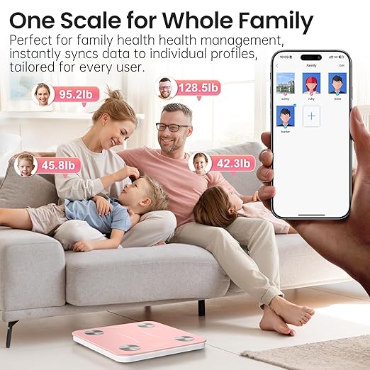 - 【UNLIMITED USERS & SHAREABLE】Recording your each measurements, automatic chart generation, monitor your fitness trend at a glance. Support tracking unlimited users,Before each weighing, please open the fitness scales APP,click the blue button to measure, stay for 10 seconds, and the body composition data will be synchronized! Be sure to place the bathroom scale on a flat, hard platform for weighing