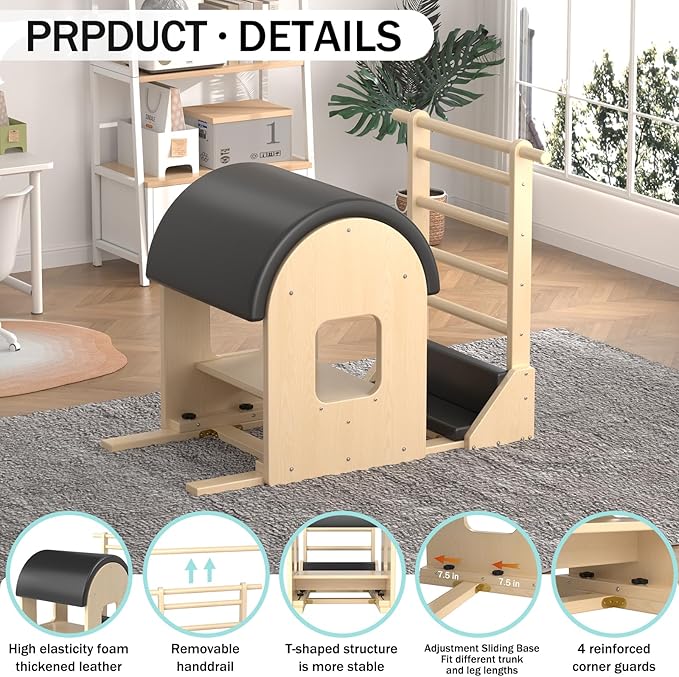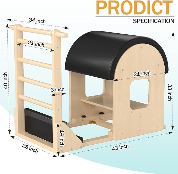 - [Premium Wood Design]: Pilates reformer adoption of Solid wood design allows for home or professional use. Equipped with specific leather, which is tear-resistant, wear-resistant, anti-aging, breathable, and not stuffy. The high-density EVA foam padded inside leather, is moderately soft and hard. Making your workout comfortable.