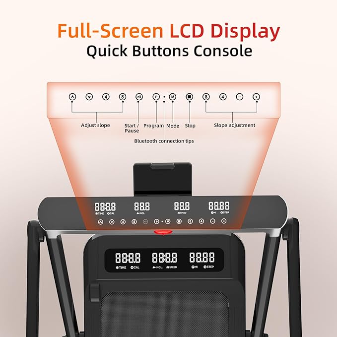 - Featuring a large LED display integrated into the frame and handlebars, this premium treadmill allows you to effortlessly monitor workout metrics like time, speed, distance, and calories burned during exercise. Stay connected via a mobile app for advanced tracking, and enjoy convenient adjustments with the included wireless remote control.