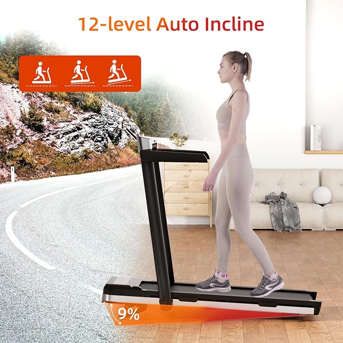 - Auto-Incline Walking Pad with 4 Sport Modes: Switch effortlessly between Walking (0.6-4 MPH), Jogging (4-6 MPH), Running (6-8 MPH), and Climbing modes. Maximize calorie burn and efficiency by customizing auto-incline levels (0/3/6/12) to match your fitness goals.