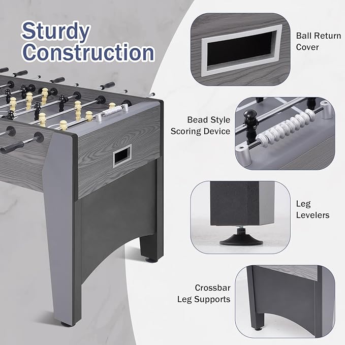 - 【Authentic Tournament Feel】 Unlike flimsy soccer tables, this premium foosball table boasts a sleek design that elevates any space. Responsive counterbalanced players allow quick defensive shifts, while the bead-scoring system tracks every goal for competitive excitement.