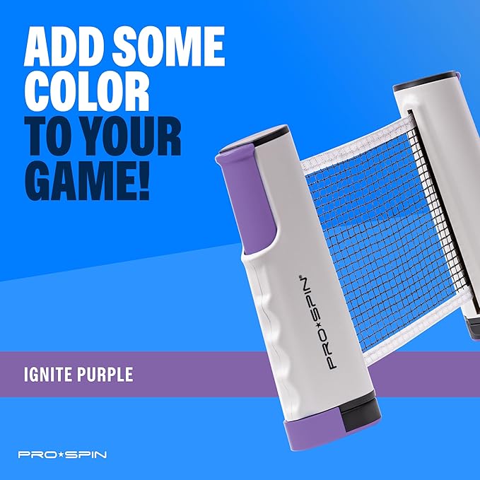 - PLAY WITH PERSONALITY – Our limited-edition retractable ping pong net in Ignite Purple lets you bring your style to the game while enjoying the same reliable fit and performance as our classic ping pong table net for any match, anywhere.