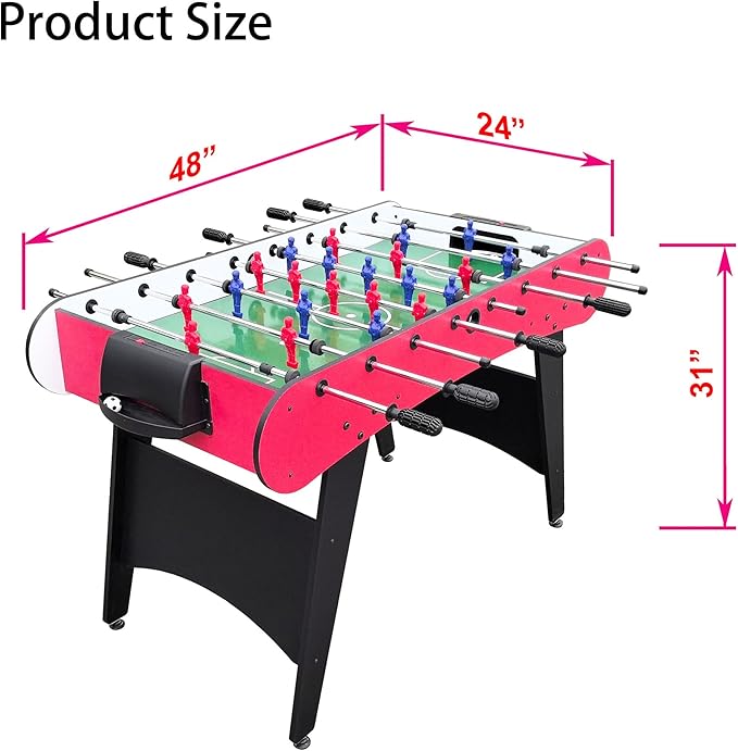 - Realistic Game Experience: Our soccer foosball game table comes with a large soccer field, 22 realistic football players, and 2 soccer balls, helping restore the real game scene to create an enjoyable atmosphere in your game room or office. In addition, there are scorers on both sides that can accurately track and record scores in real time.
