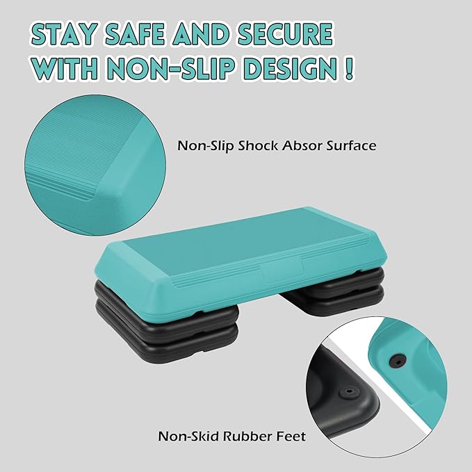 - Non-Slip & Shock-Absorbing: Grooved, nonslip top that absorbs shock, preventing slips and allowing you to focus on safe, effective movements during every workout. Each riser has four nonskid feet, preventing slipping or floor damage, whether used on carpet or hardwood, keeping your workout stable and safe.