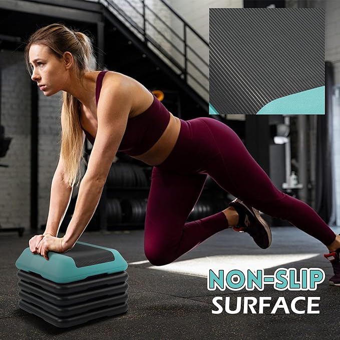 - Non-Slip & Floor Friendly: Exercise step platform with a premium nonslip surface for maximum safety. Each riser has four nonskid feet, preventing slipping or floor damage, whether used on carpet or hardwood, keeping your workout stable and safe.