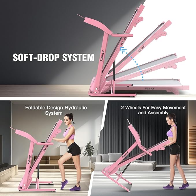 - 🏆【Foldable and Portable Design】The soft-drop folding design of the FUNMILY heavy duty treadmills for home allows for easy storage, making it an ideal choice for small apartments or home gyms. When not in use, simply fold the treadmill and tuck it away and use the transport wheels to move it to a corner, freeing up valuable floor space.