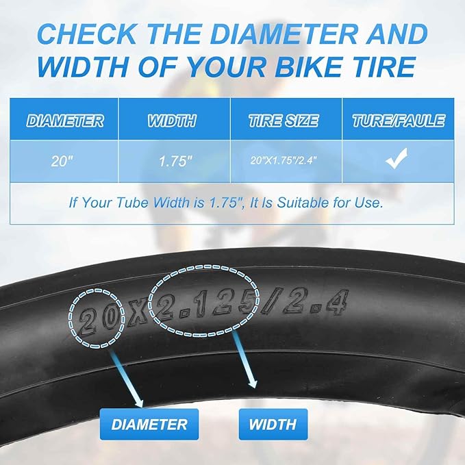 - Size - The inner tube fits most tire bikes with 20" tires that are between 2.125" to 2.4" wide. With 48mm standard valve. Package included 1pcs x inner tube