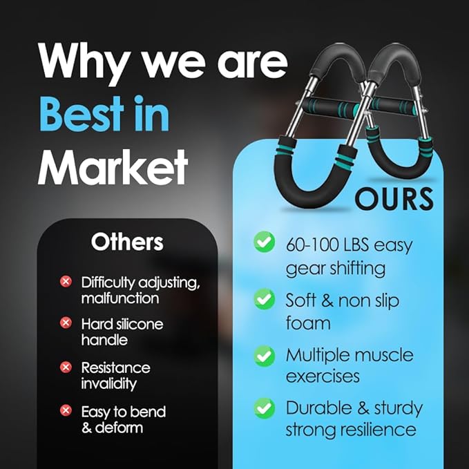 - 【Military-Grade Strength】Built with high-strength metal springs and wrapped in a durable leather cover, this arm workout equipment is designed to withstand intensive use. The thickened anti-slip foam handles ensure a secure and comfortable grip, preventing hand fatigue and discomfort during your workouts.