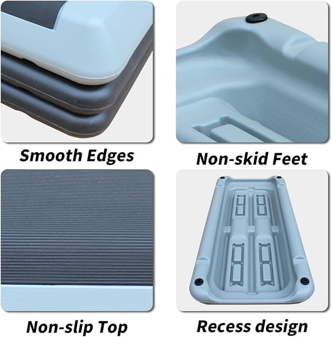 - Non-slip design: The textured surface is non-slip and shock-absorbing, which means you can stay stable through each set of steps. Each riser is also fitted with a non-slip rubber foot to prevent it from sliding when moving and scraping the floor.