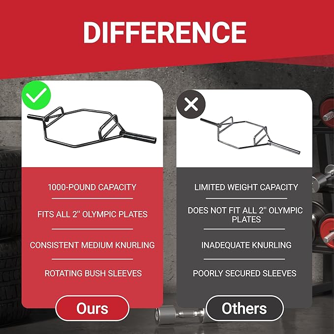 Olympic 2-Inch Hex Weight Lifting Trap Bar with Long and Rotating Sleeves, 500-Pound Capacity, Open Design, Alloy Steel, Chrome