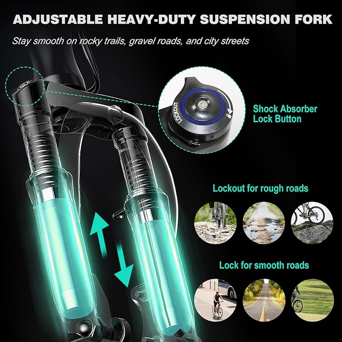 - Front Suspension + Dual Disc Brakes: Suspension fork absorbs bumps for comfort and control; dual discs deliver consistent stopping power in wet or dry conditions