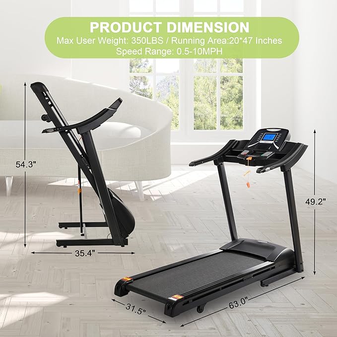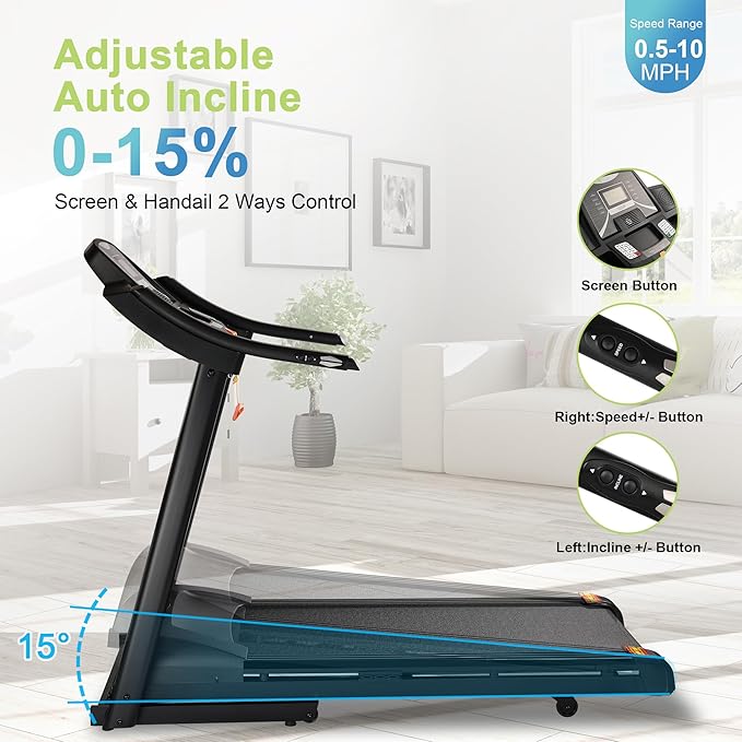 - 【Powerful 4.0HP Motor & 15% Auto Incline】Conquer your fitness goals with a whisper-quiet 4.0HP motor and 15% auto incline. Whether you’re walking, jogging, or running up to 10.0 MPH, enjoy smooth, quiet workouts—perfect for home use without disturbing others.