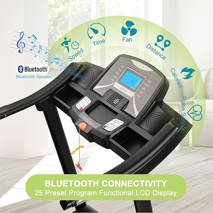 - 【Bulit-In Bluetooth Speaker LCD Pannel】Functional LCD display can track the speed, distance, time, and calories in real-time. With 25 preset programs and 3 working modes to meet your different exercise needs. Connect your phone through the integrated Bluetooth speaker and enjoy your favorite music during your workout.