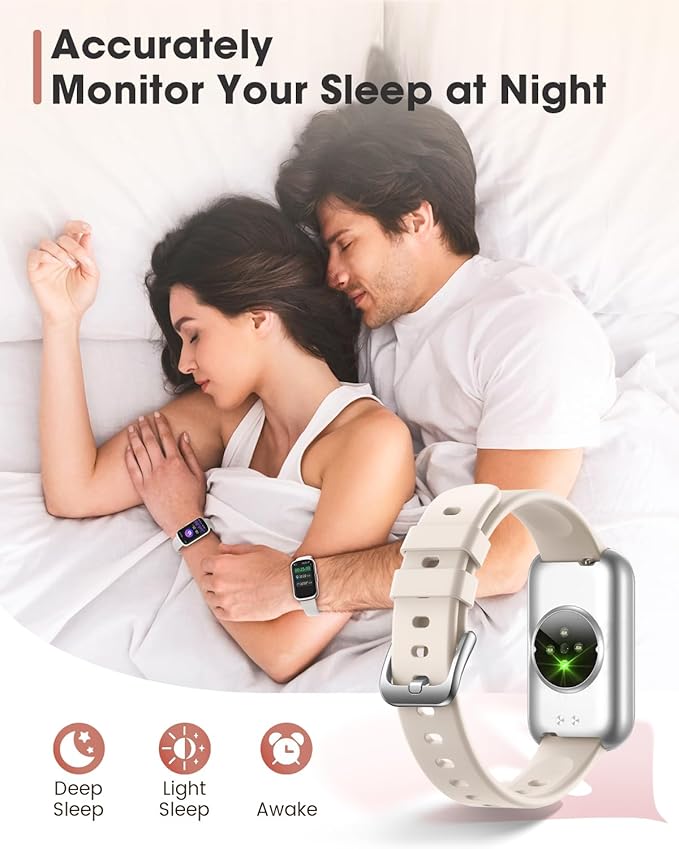 - [Nightly Sleep Tracker with Weekly Reports] Sleep quality affects our daily efficiency and fitness results. In order to improve our understanding of our own sleep conditions, this sleep tracking watch will record sleep data from 6 pm to 12 noon the next day. You can see the duration of deep sleep and light sleep in the app, and view the analysis data in the sleep weekly report.