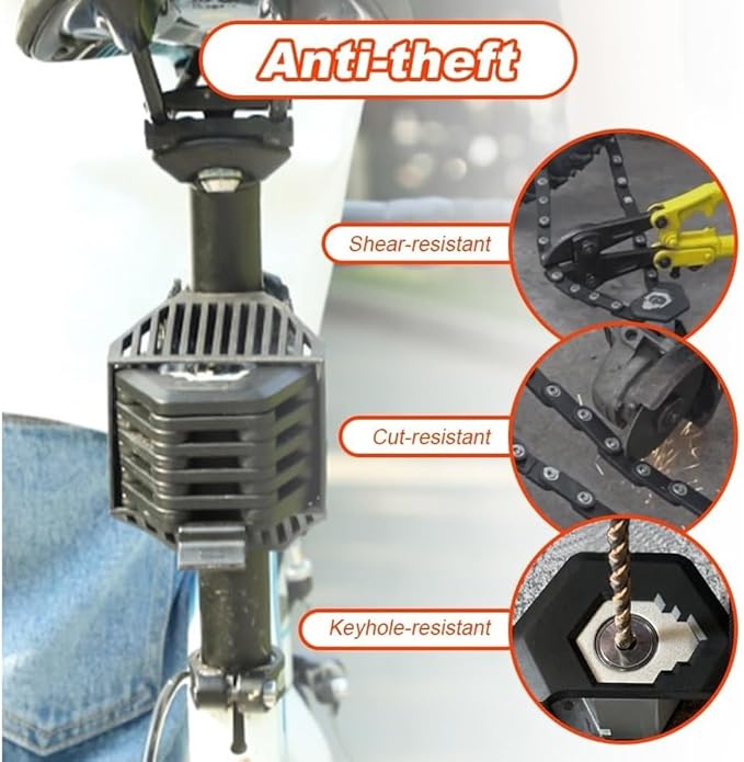 - Easy to Use with 3 Keys: Equipped with three spare keys, this foldable chain lock ensures quick and hassle-free access anytime. The smooth folding links allow easy operation, making it a practical choice for cyclists, e-bike riders, and scooter users