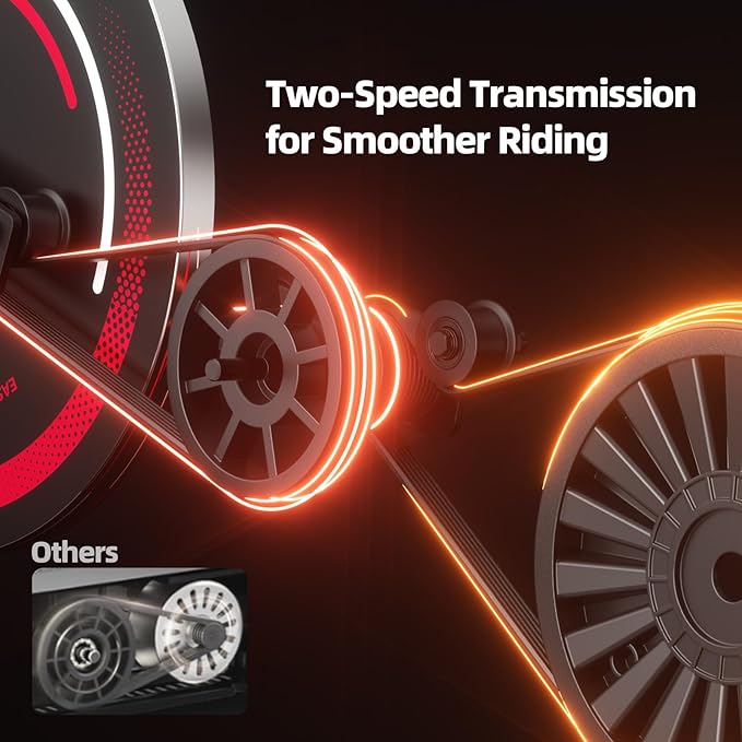 - 【100-Level Silent Magnetic Resistance 】With 100 adjustable levels, this magnetic resistance system lets you fine-tune every ride for your fitness goals. The whisper-quiet belt drive keeps workouts smooth and silent, so you can train anytime—morning or night—without disturbing family or neighbors. From recovery spins to intense hill climbs, it delivers a versatile, customizable training experience that grows with your progress