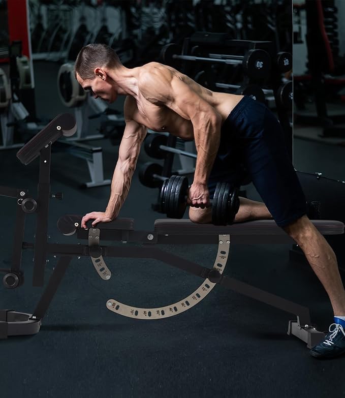 Adjustable Weight Bench for Home Gym, Decline Flat Incline Bench with Leg Extension & Preacher Curl Attachment for Bench Press, Sit Up, Leg Curl & Ab Workout